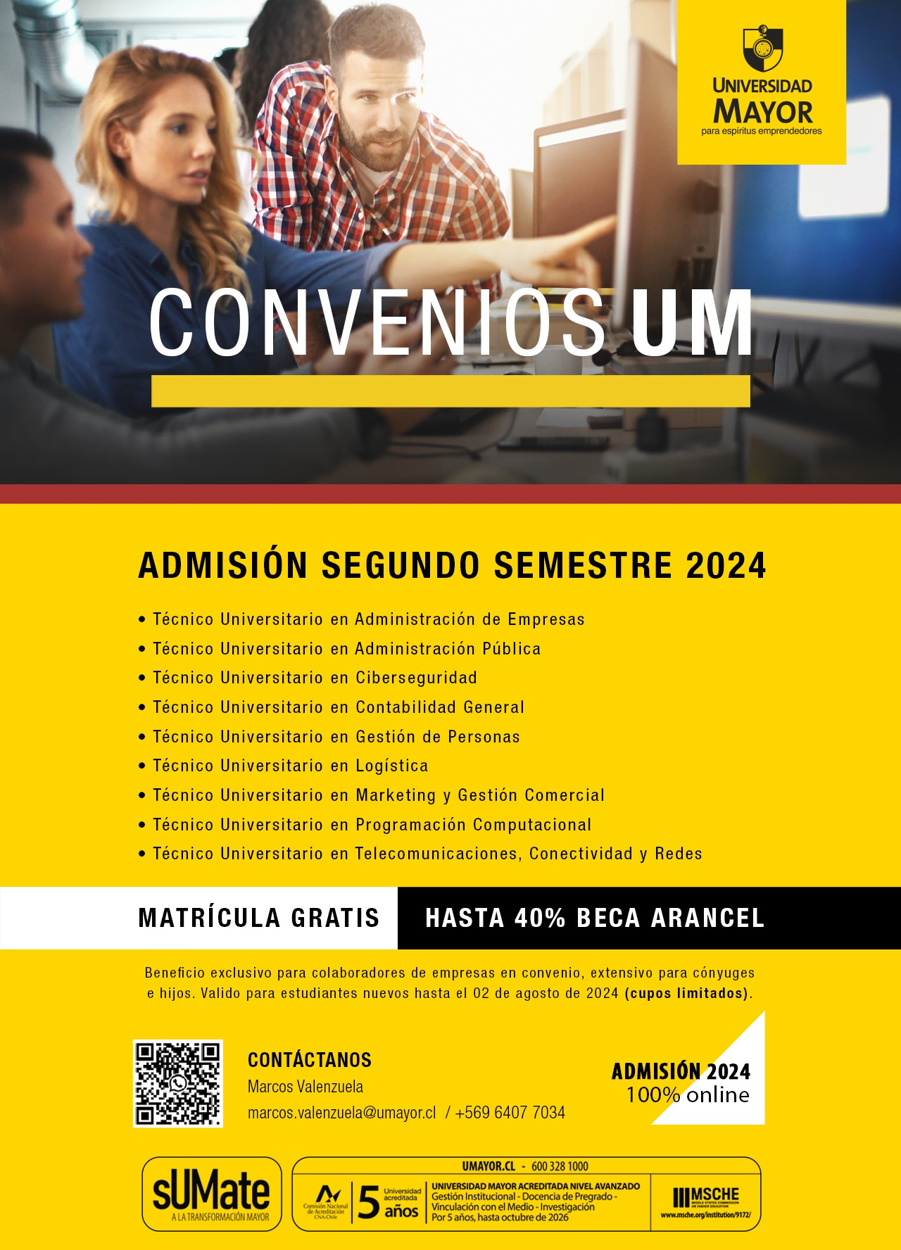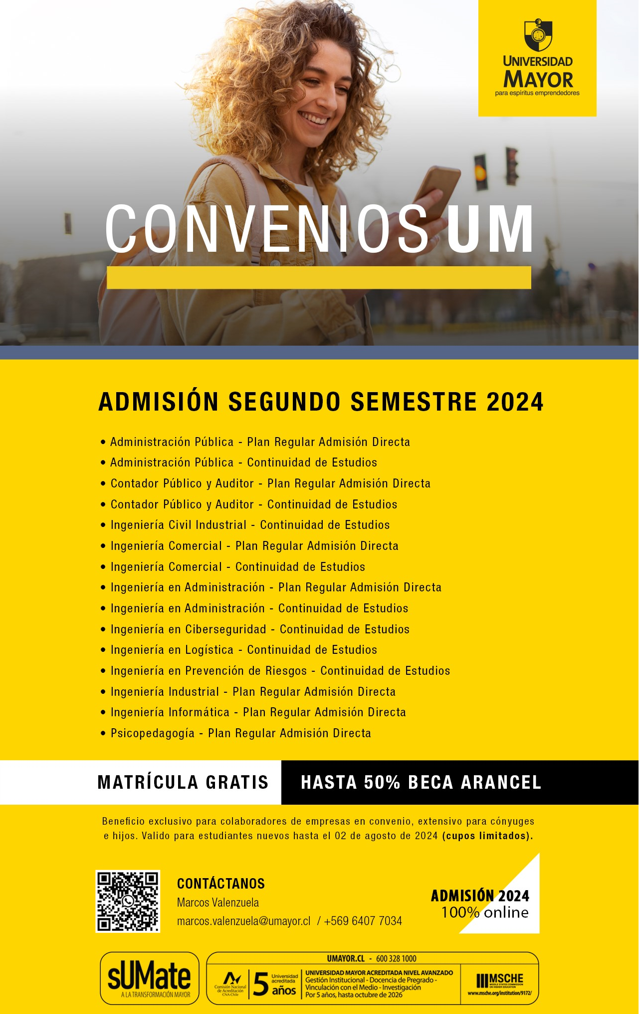 Solo hasta el 09 de agosto 2024, Beca Convenio especial de 50% de descuento en el arancel y matricula gratis (tiempo limitado)