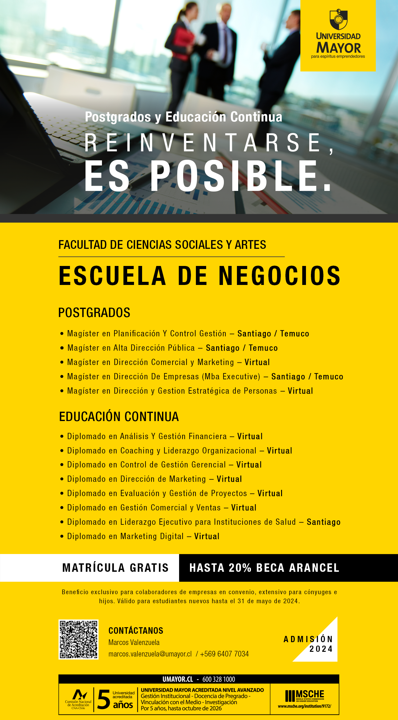 Compartimos con uds, información sobre magister existentes en el convenio con universidad mayor.